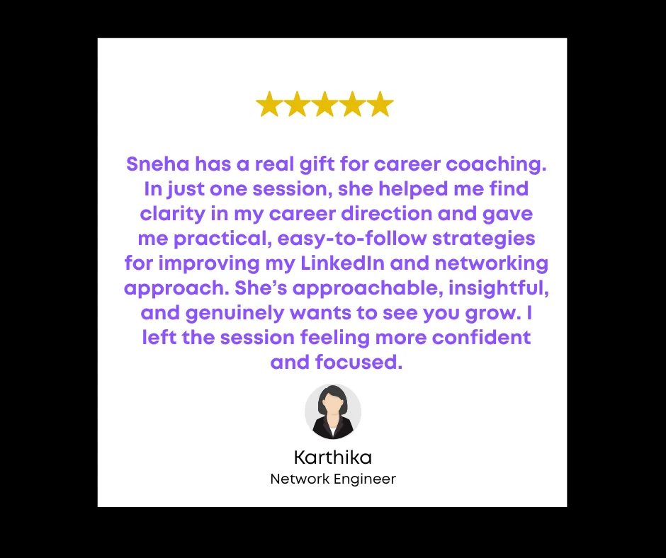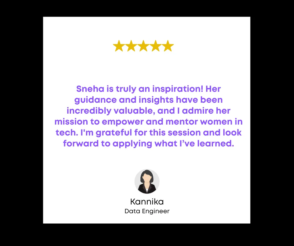 My coaching program is specifically designed for women engineers who are eager to advance their careers or step into leadership roles. Whether you are a technical lead or an individual contributor looking to transition into a leadership role, this program will offer the personalized guidance, actionable insights, and unwavering support you need. By focusing on your individual strengths and goals, you will be empowered to confidently navigate your career path and achieve long-lasting success. If you're committed to personal growth and ready to invest in your future, this program is the perfect fit for you.